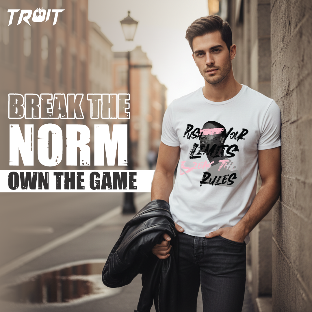 Level up your wardrobe with the Troit Cotton T-Shirt for Men – featuring the powerful message “Push Your Limits” This motivational printed T-shirt is designed for men who lead with purpose, grind with passion, and believe in staying focused. Whether you're at the gym, on the go, or relaxing on the weekend, this casual cotton tee keeps you comfortable and inspired all day long. Crafted from high-quality breathable cotton, it offers a soft feel and durable wear, making it a perfect choice for both active and casual settings.